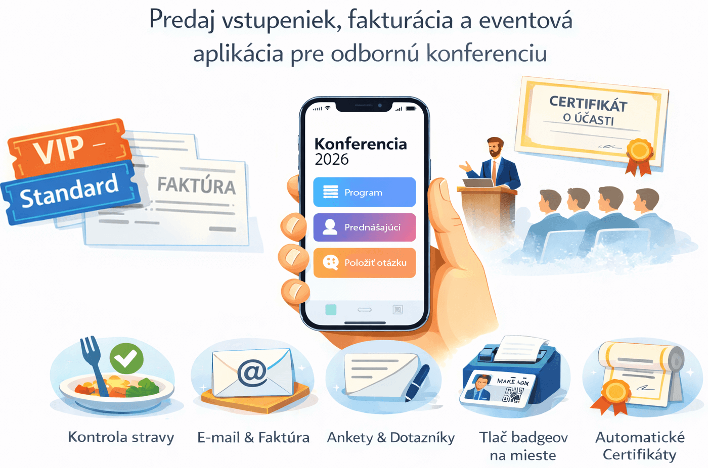 Predaj vstupeniek, fakturácia a eventová aplikácia pre odbornú konferenciu